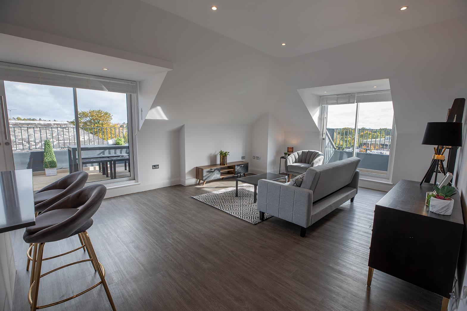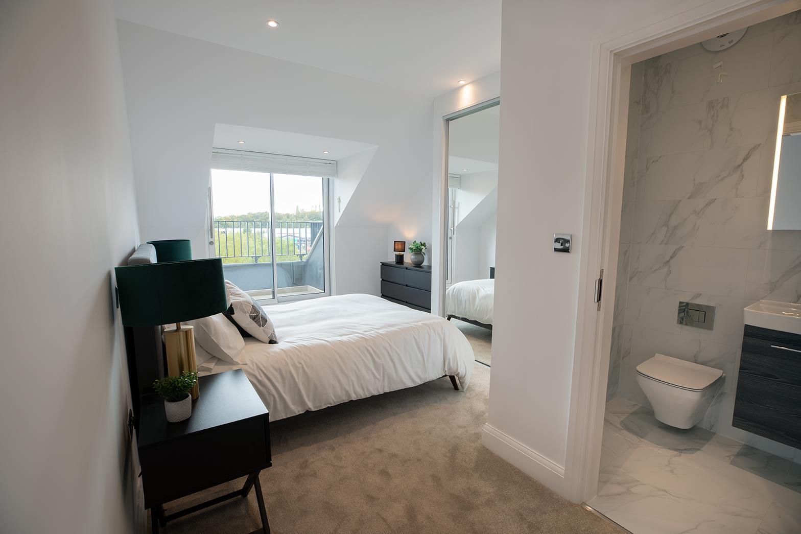 This second floor apartment benefits from a bright and spacious open plan kitchen and living room with access onto your private balcony, separate utility cupboard, primary bedroom with en-suite as well as another double bedroom, and family bathroom.