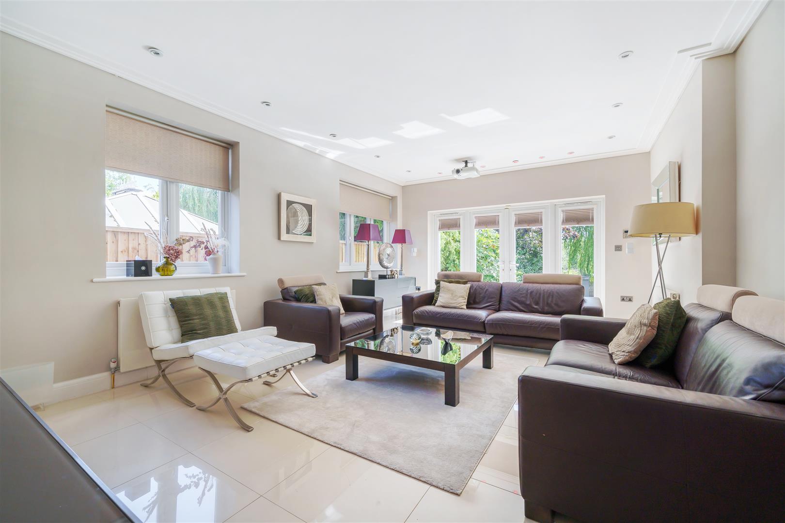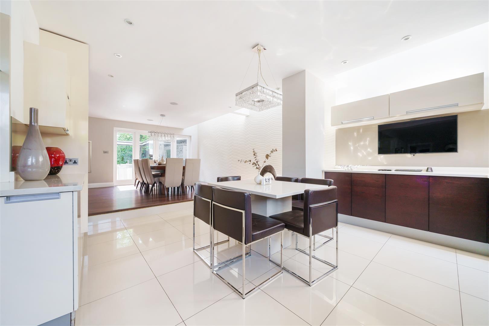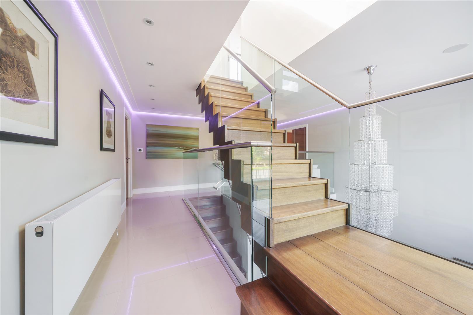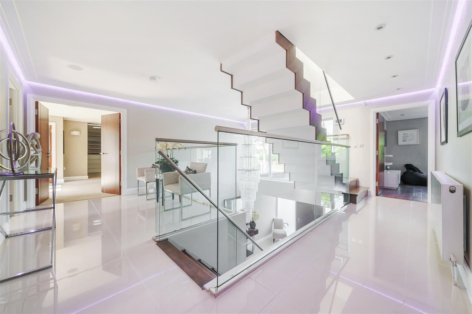 The ground floor comprises of a large hall way with mahogany staircase and glass balustrades allowing light to reach all three floors. There is also a large open plan kitchen with dining area and leads to the living room. There is also a separate tv/cinema room. All three rooms at the rear of the property have access onto the large beautifully landscaped garden through french doors. The ground floor also includes a utility room, guest cloakroom and access to the garage.