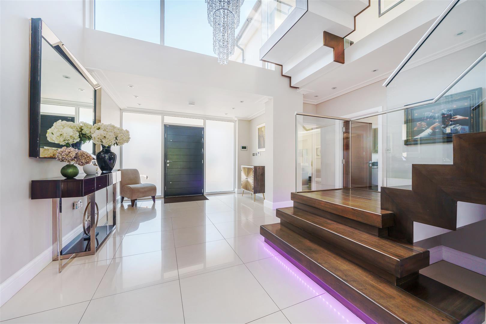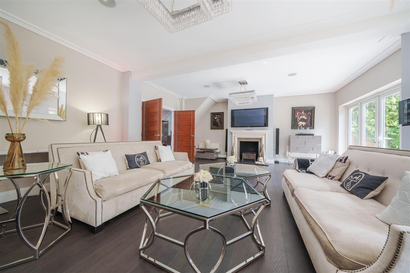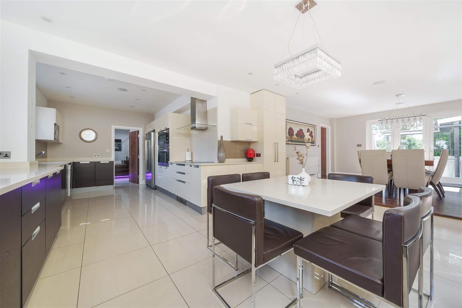 The ground floor comprises of a large hall way with mahogany staircase and glass balustrades allowing light to reach all three floors. There is also a large open plan kitchen with dining area and leads to the living room. There is also a separate tv/cinema room. All three rooms at the rear of the property have access onto the large beautifully landscaped garden through french doors. The ground floor also includes a utility room, guest cloakroom and access to the garage.