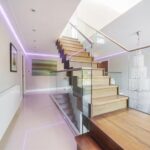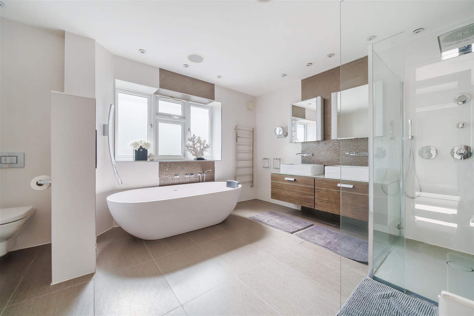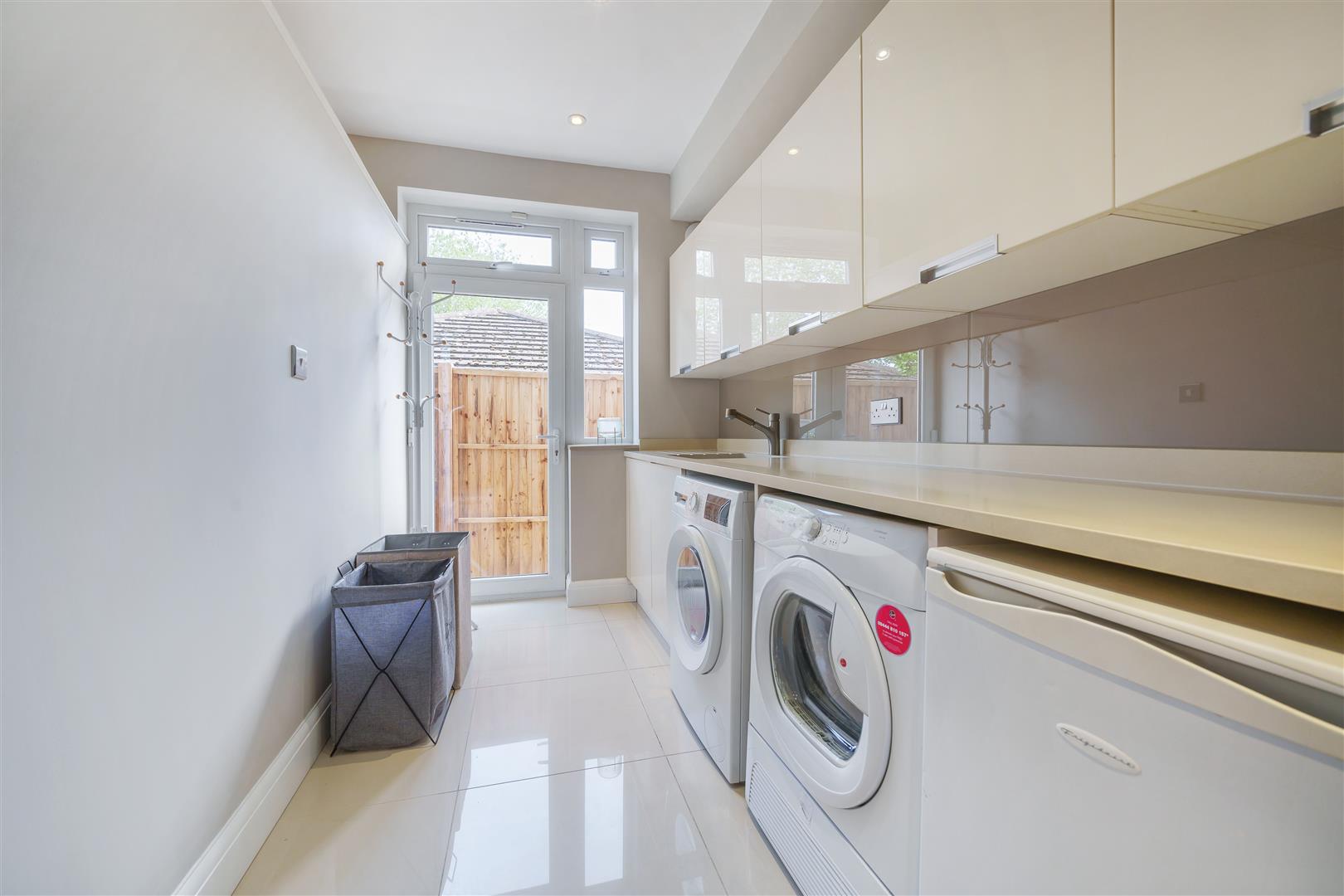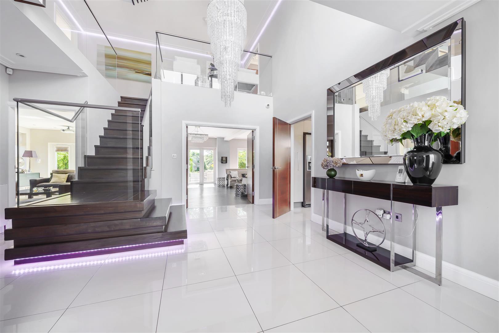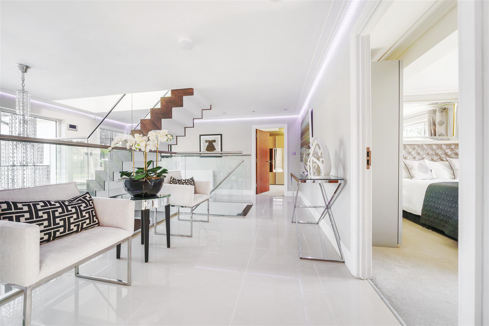 The ground floor comprises of a large hall way with mahogany staircase and glass balustrades allowing light to reach all three floors. There is also a large open plan kitchen with dining area and leads to the living room. There is also a separate tv/cinema room. All three rooms at the rear of the property have access onto the large beautifully landscaped garden through french doors. The ground floor also includes a utility room, guest cloakroom and access to the garage.
