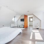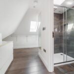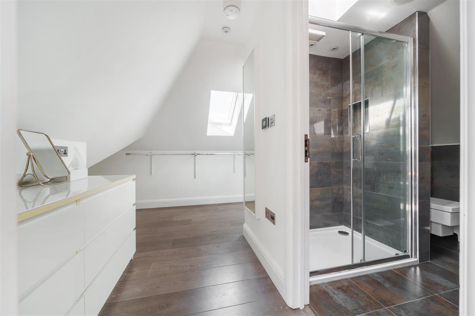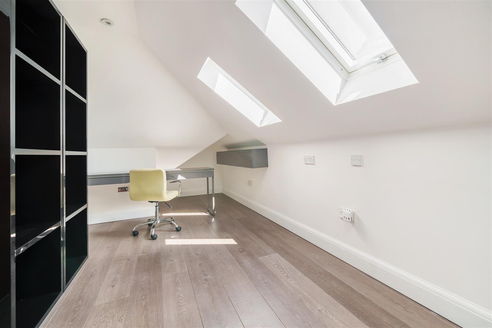 The second floor is home to the final bedroom, with en suite, as well as a study and eaves storage.